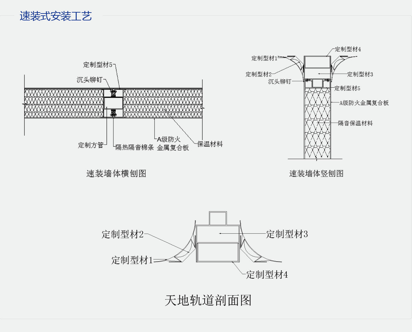 内装速装墙体板是用阿美斯特自主研发速装型材做框架,双面固定A级防火金属复合板,根据隔音需求内嵌A级防火热固性胶凝聚苯板高压复合而成的模块化墙体。