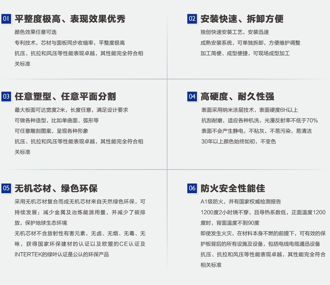 平整 / 芯材与金属面板层同步收缩率,保障了板材强度及剥离强度等,各项检测满足室内外使用需求